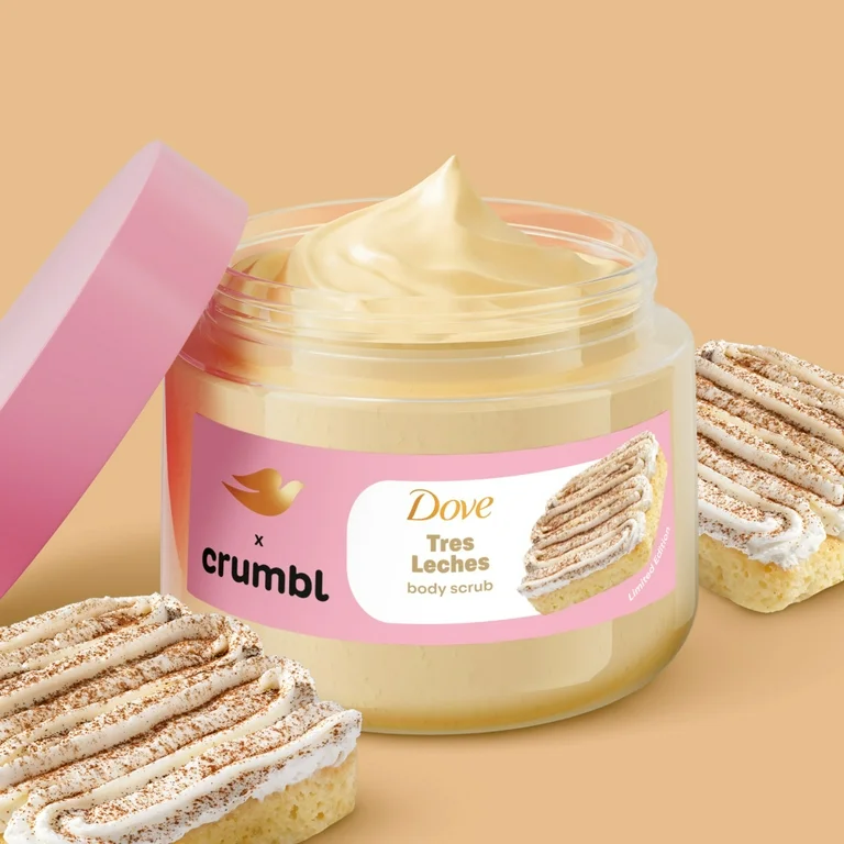 Terminar una caja entera de galletas Crumbl es una forma de autocuidado, ¿verdad? Esa es la clase de pensamiento que apoyamos, así que hicimos Edición Limitada Dove x Crumbl Tres Leches solo para ti. Convierte cada ducha en una dicha de canela con este Body Scrub inspirado en el delicioso postre Crumbl. ¡Endulza tu rutina de ducha! Mientras tus sentidos se desmoronan y buscan más, esta fórmula ayuda a reponer los niveles de ceramida en tu piel mientras ayuda a reparar tu barrera cutánea después del afeitado. Pero advertencia: Olerás deliciosamente dulce, pero por favor no lo comas.