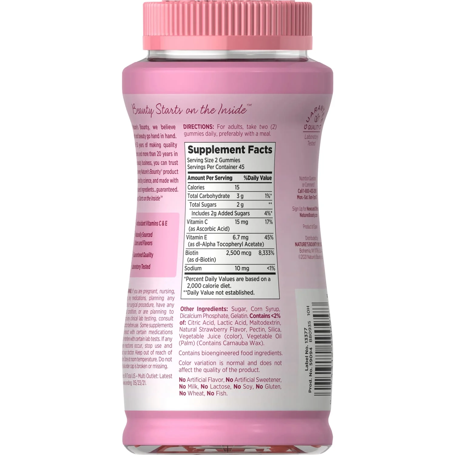 - Con biotina que apoya la belleza: las gomitas Nature’s Bounty Hair, Skin y Uñas contienen biotina que apoya la belleza, un nutriente vital que ayuda a mantener el cabello sano mientras apoya la belleza general.